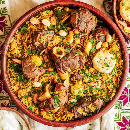 Tender lamb is gently cooked with aromatic spices, chickpeas, garlic, and perfectly seasoned rice — all infused together inside a sealed pot to lock in deep, rich flavor. Every grain of rice Qedreh the warmth of cumin, cardamom, and Palestinian spice blends, creating a dish that is bold, comforting, and unforgettable.